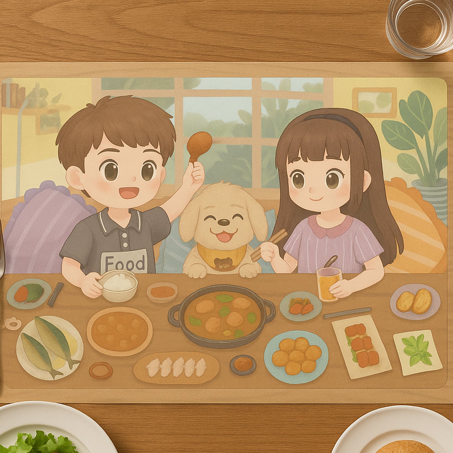 Cartoon-Themed Food Table Wallpaper Poster for Kids – 90×30 cm – High-Quality Print – Perfect for Kid’s Room Decoration